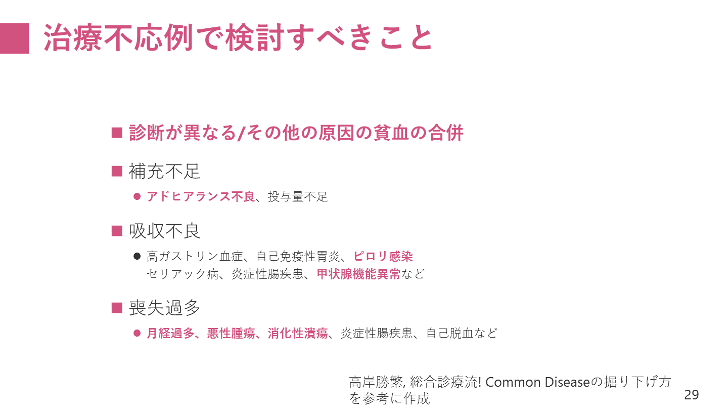 #29. 治療不応例で検討すべきこと 29 診断が異なる/その他の原因の貧血の合併