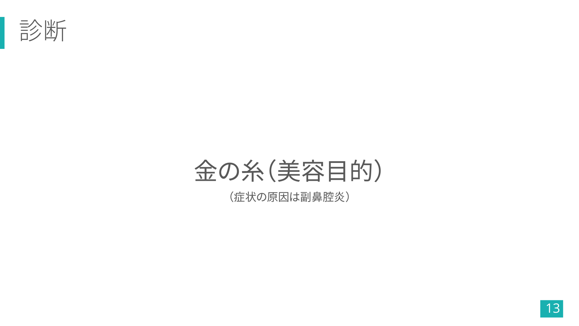 #13. 診断 金の糸(美容目的) (症状の原因は副鼻腔炎) 13