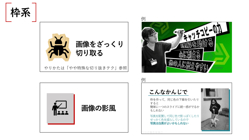 スライドを作っていて,どうしても文字ばかりになってしまう.