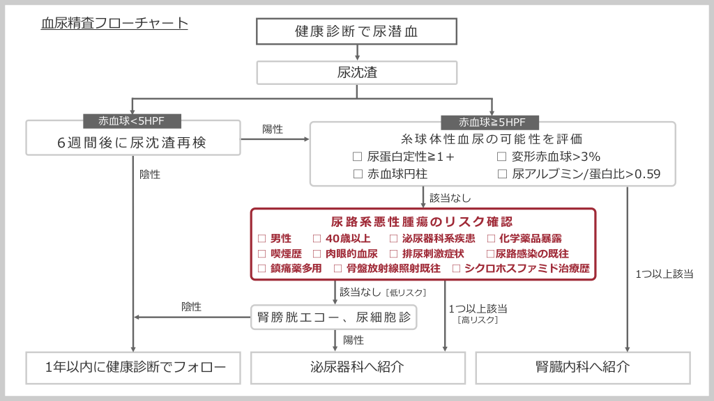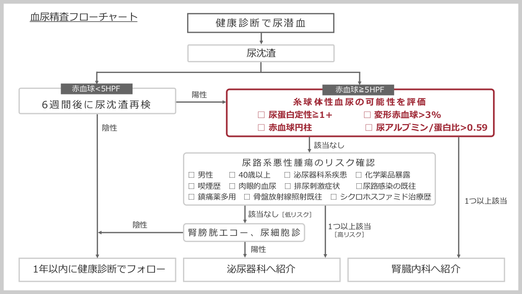 血尿精査フローチャートと腎臓内科への紹介