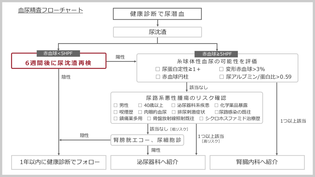 尿沈渣陰性時の再検査とフォローアップ