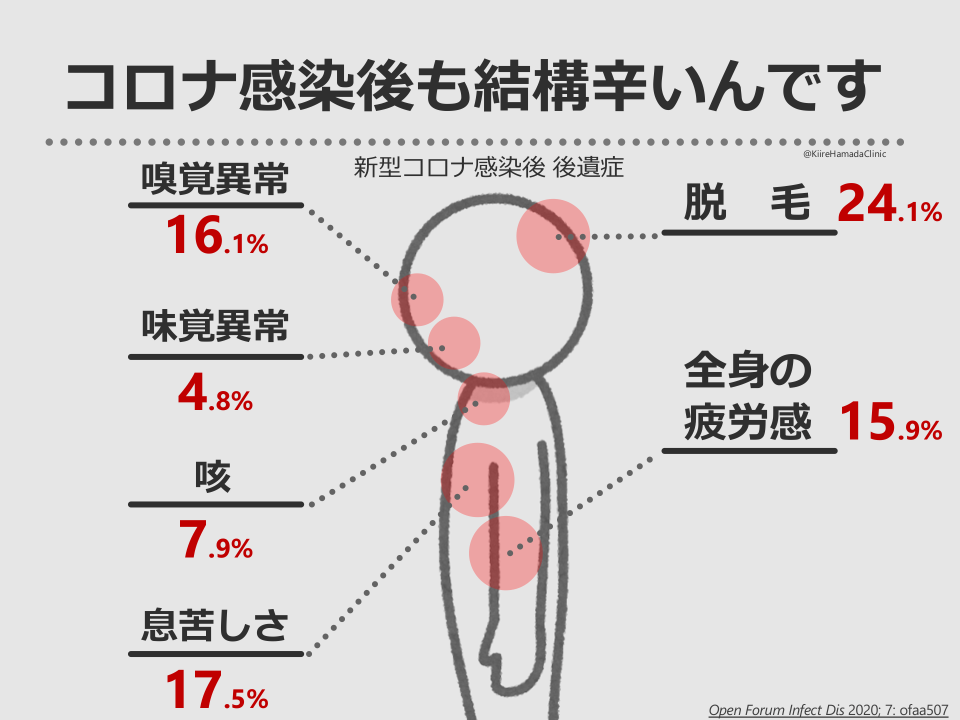#10. コロナ感染後も結構⾟いんです 嗅覚異常 16.1% 味覚異常 4.8% 咳 新型コロナ感染後 後遺症 @KiireHamadaClinic ⽑ 24.1% 全⾝の 疲労感 15.9% 脱 7.9% 息苦しさ 17.5% Open Forum Infect Dis 2020; 7: ofaa507