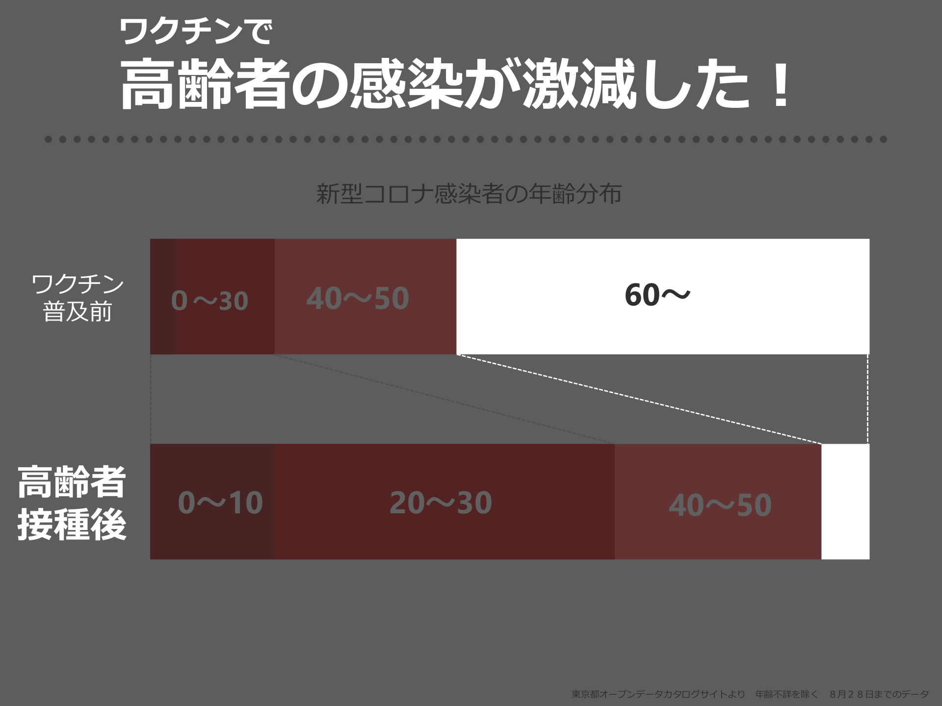 #16. ワクチンで ⾼齢者の感染が激減した︕ 新型コロナ感染者の年齢分布 ワクチン 普及前 ⾼齢者 接種後 0〜30 0〜10 40〜50 20〜30 60〜 40〜50 東京都オープンデータカタログサイトより 年齢不詳を除く 8⽉28⽇までのデータ