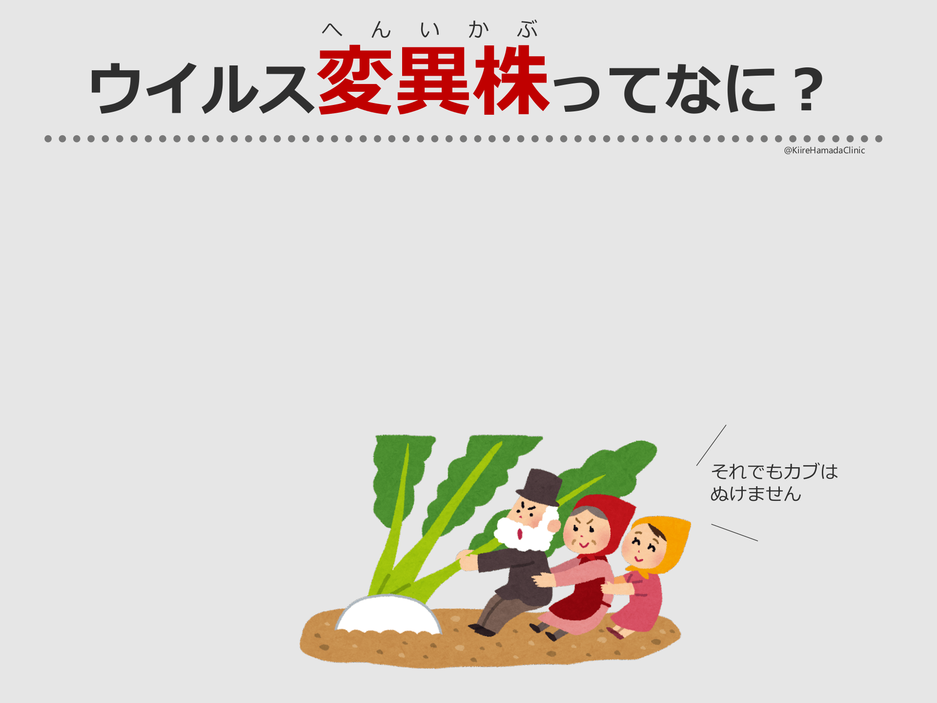 #17. へ ん い か ぶ ウイルス変異株ってなに︖ @KiireHamadaClinic それでもカブは ぬけません
