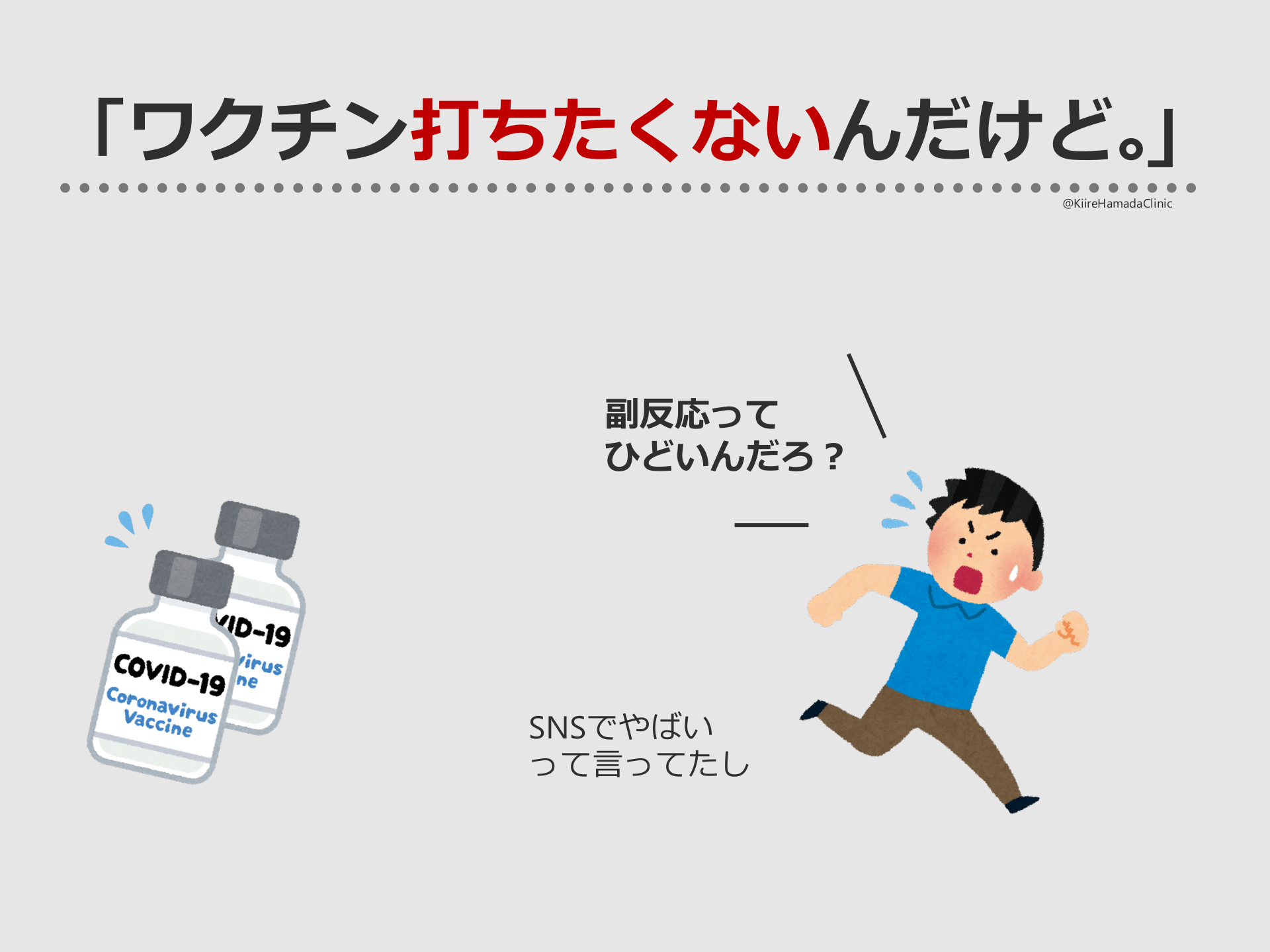 #5. 「ワクチン打ちたくないんだけど。 」 @KiireHamadaClinic 副反応って ひどいんだろ︖ SNSでやばい って⾔ってたし