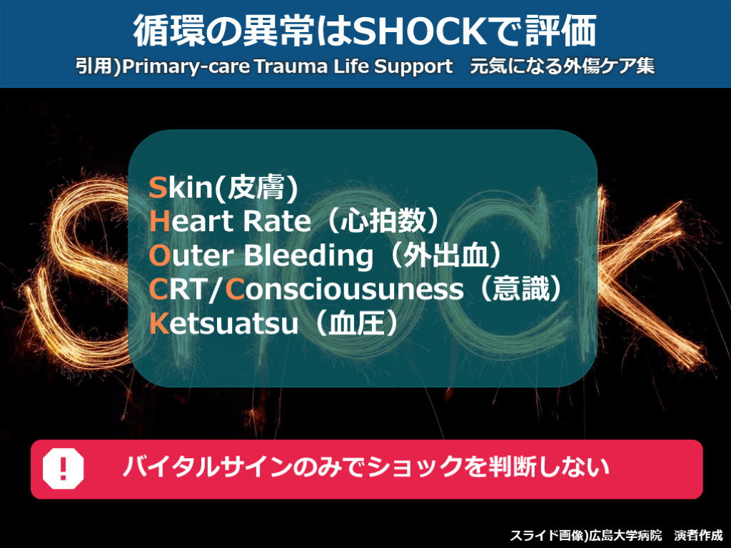 #5. ショック≠血圧低値 バイタルサインのみでショックを判断しない スライド画像)広島大学病院 演者作成