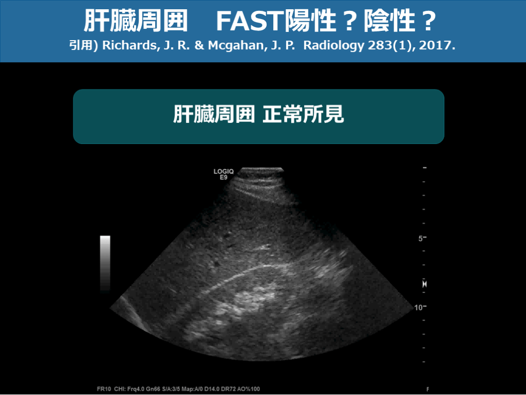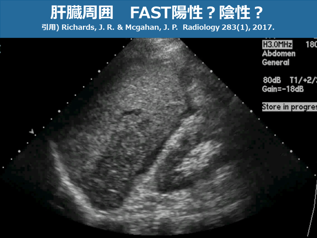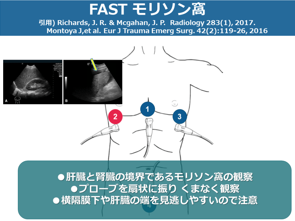 引用) Richards, J. R. & Mcgahan, J. P. Radiology 283(1), 2017. スライド画像)広島大学病院 演者作成 モリソン窩少量EFSあり