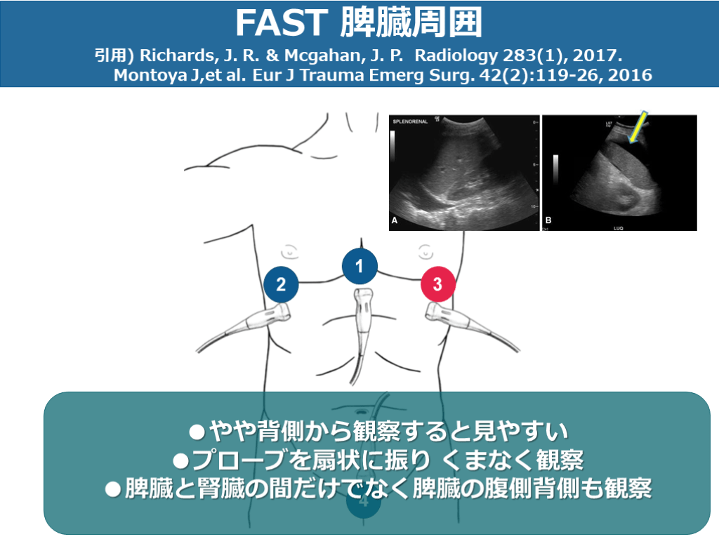 Montoya J,et al. Eur J Trauma Emerg Surg. 42(2):119-26, 2016 スライド画像)広島大学病院 演者作成 1 2 3 4 ●前後左右にしっかりプローブを振る