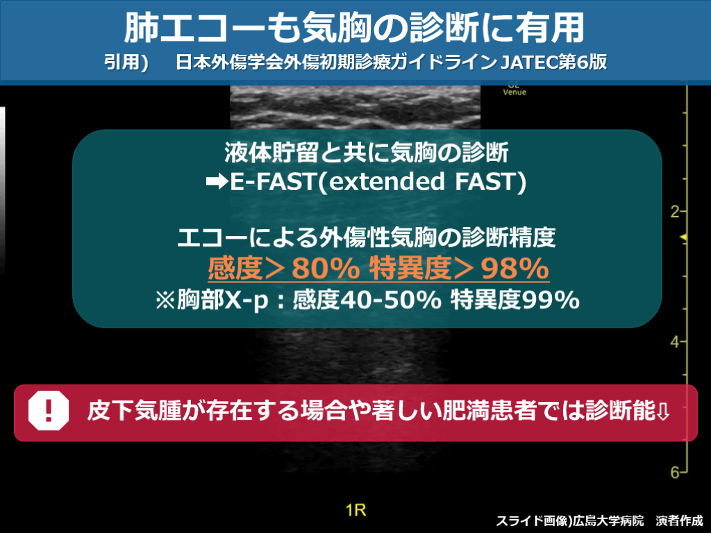 スライド画像)広島大学病院 演者作成 液体貯留と共に気胸の診断