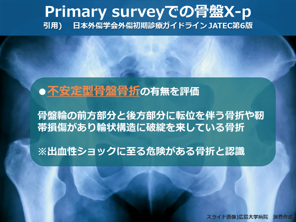※出血性ショックに至る危険がある骨折と認識 スライド画像)広島大学病院 演者作成