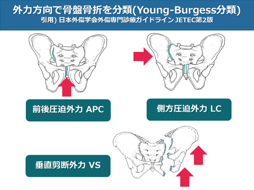 引用) 日本外傷学会外傷専門診療ガイドライン JETEC第2版 側方圧迫外力 LC 前後圧迫外力 APC 垂直剪断外力 VS