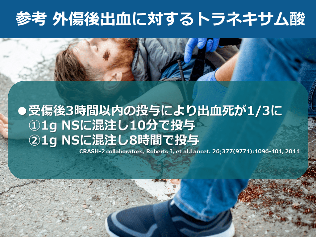 #48. 参考 外傷後出血に対するトラネキサム酸 ●受傷後3時間以内の投与により出血死が1/3に