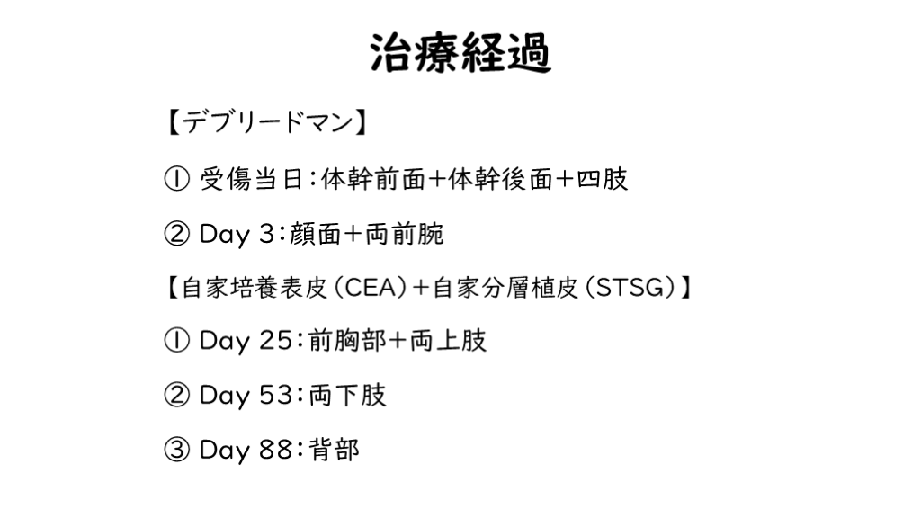 はじめて熱傷患者を受け持つ方には参考になると思います。