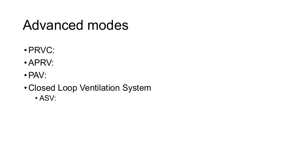 人工呼吸器の高度な換気モード(Advanced modes)を解説します。PRVC、APRV、PAV、ASVの動作原理と特徴を整理。重症ARDSへの応用や患者との同調性改善など、各モードの臨床的な位置づけとエビデンスを学びます。