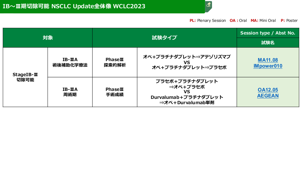 IB~Ⅲ期切除可能 NSCLC Update全体像 WCLC2023