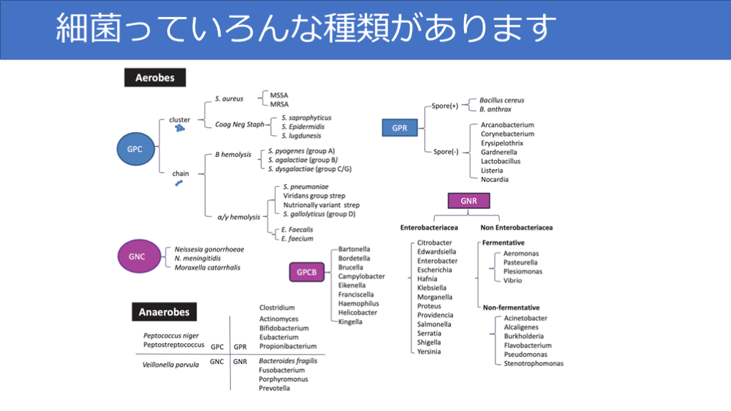 →今日の講義は「鑑別診断」を意識しながら,「グラム陽性球菌」のままで終わらせずに微生物名を突き詰めることを目標にしています