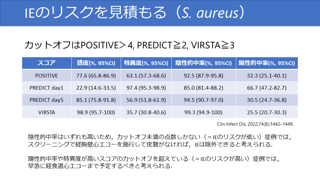 #32. IEのリスクを見積もる(S. aureus) S. aureus菌血症でのIEリスク評価