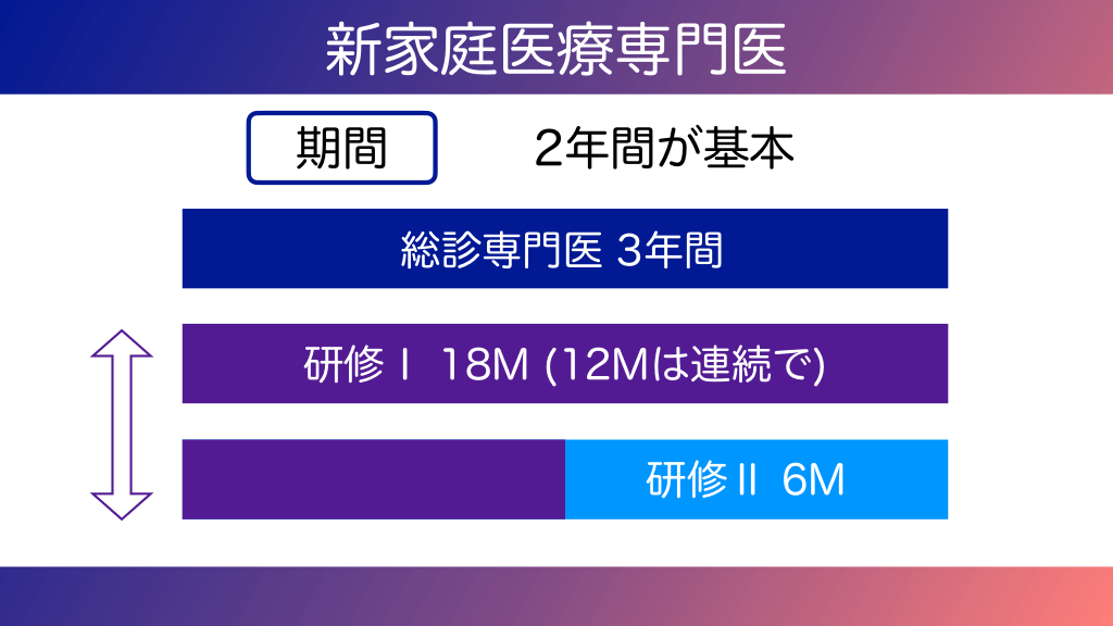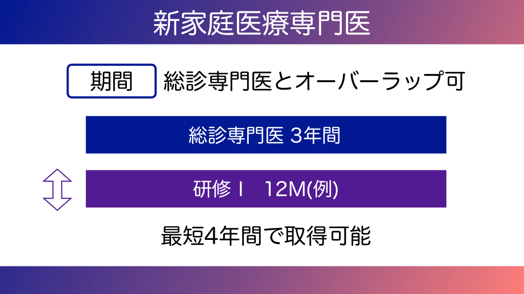 #18. 新家庭医療専門医 期間 総診専門医とオーバーラップ可 総診専門医 3年間 研修Ⅰ 12M(例) 最短4年間で取得可能