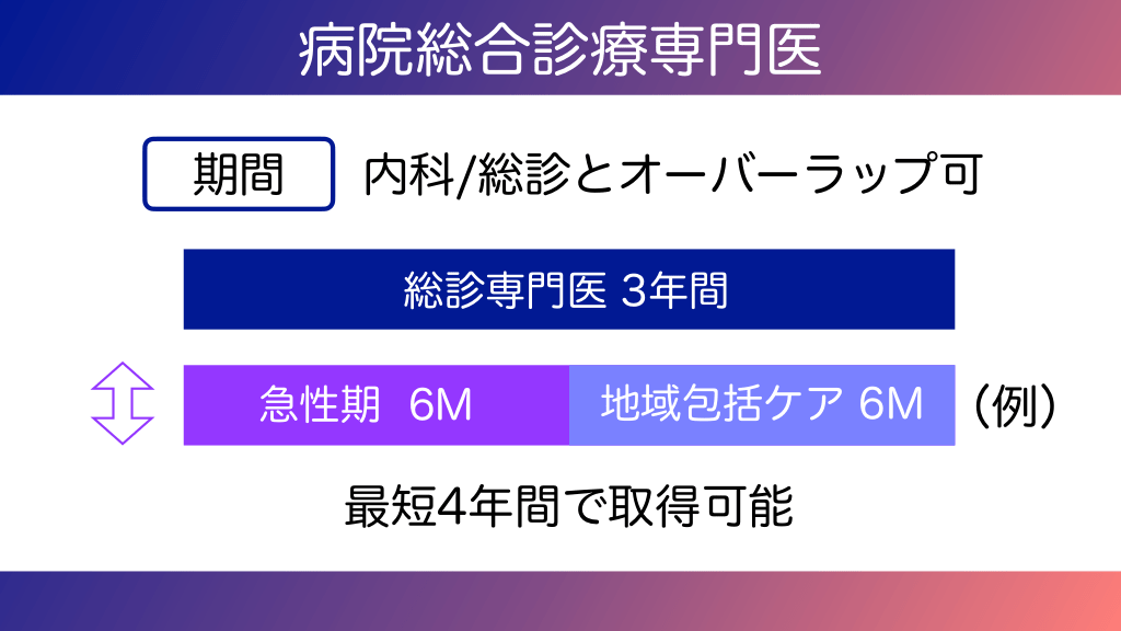 #27. 病院総合診療専門医 期間 内科/総診とオーバーラップ可 総診専門医 3年間 急性期 6M 地域包括ケア 6M (例) 最短4年間で取得可能