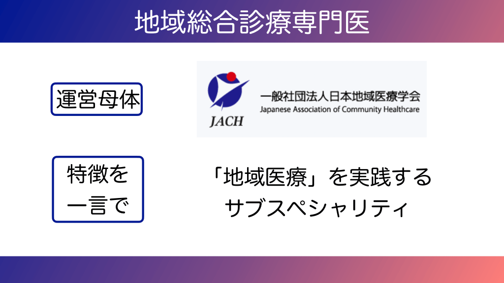 #33. 地域総合診療専門医 運営母体 特徴を 一言で 「地域医療」を実践する サブスペシャリティ