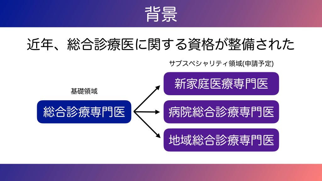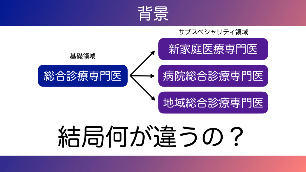 #5. 背景 サブスペシャリティ領域 基礎領域 総合診療専門医 新家庭医療専門医 病院総合診療専門医 地域総合診療専門医 結局何が違うの?