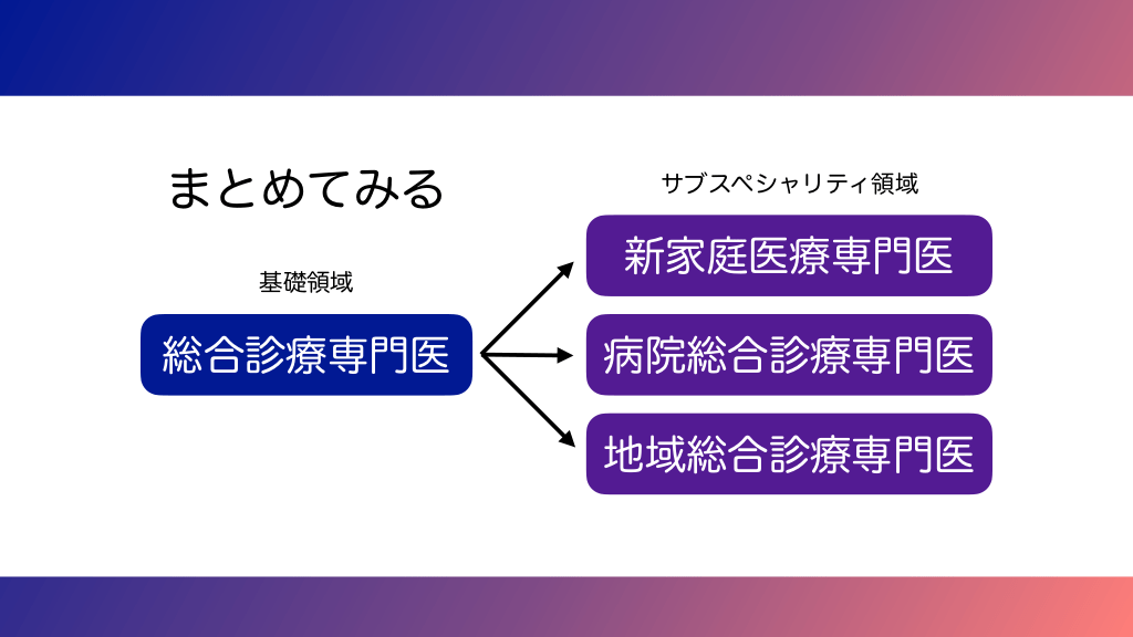 #43. まとめてみる 基礎領域 総合診療専門医 サブスペシャリティ領域 新家庭医療専門医 病院総合診療専門医 地域総合診療専門医