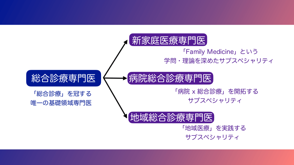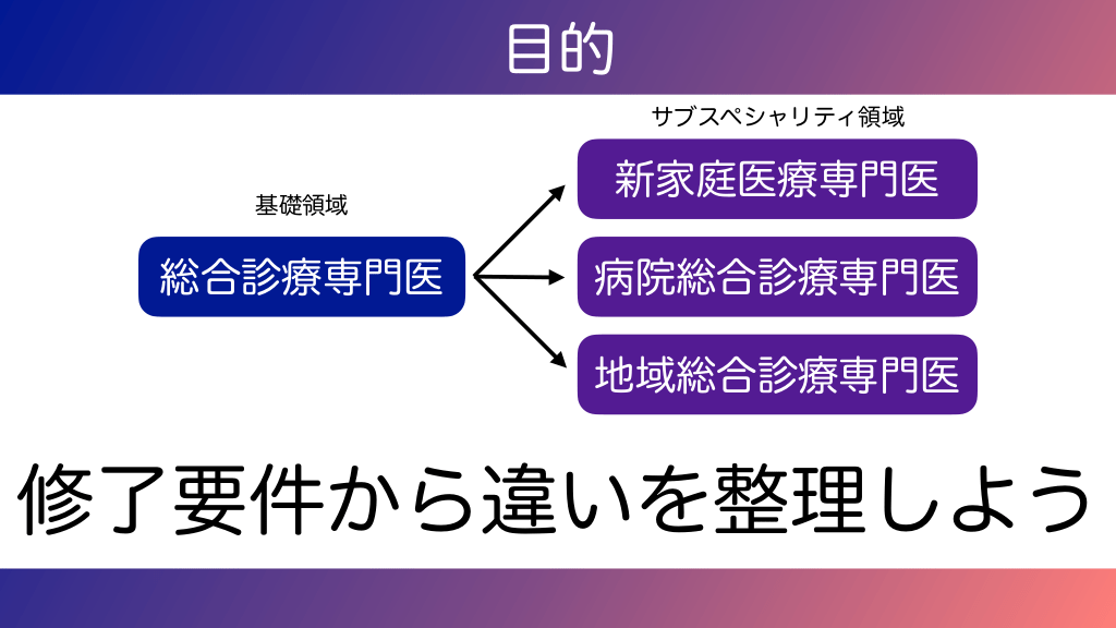 #6. 目的 サブスペシャリティ領域 基礎領域 総合診療専門医 新家庭医療専門医 病院総合診療専門医 地域総合診療専門医 修了要件から違いを整理しよう