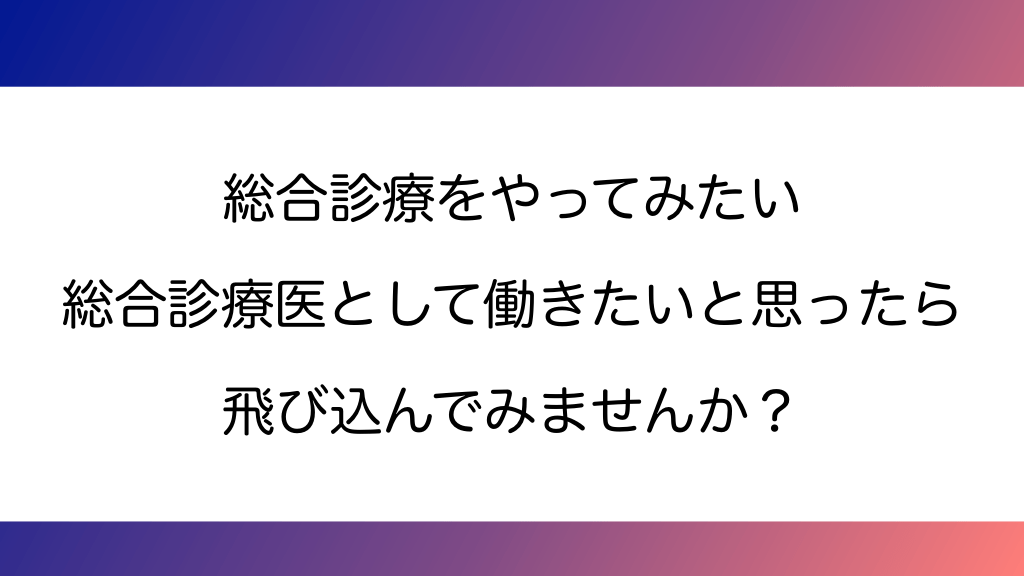 #46. 総合診療をやってみたい 総合診療医として働きたいと思ったら 飛び込んでみませんか?