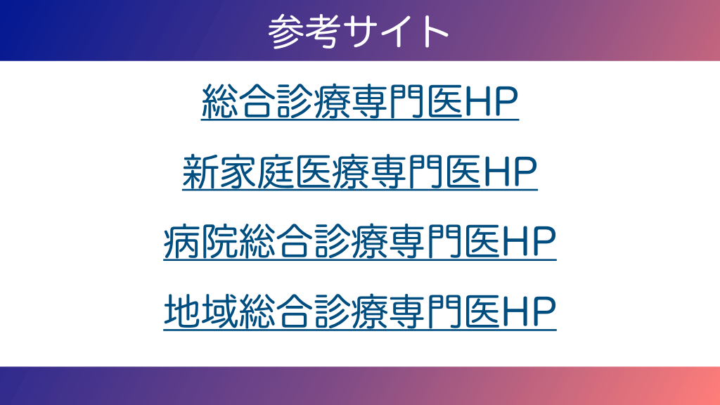 #47. 参考サイト 総合診療専門医HP 新家庭医療専門医HP 病院総合診療専門医HP 地域総合診療専門医HP