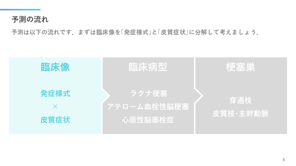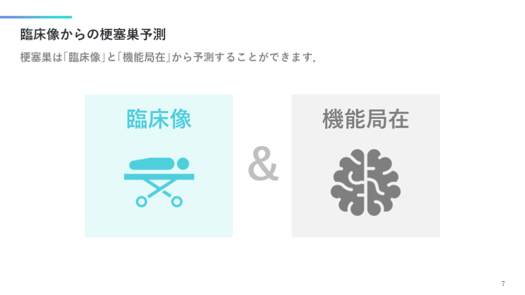 #8. 臨床像からの梗塞巣予測 梗塞巣は「臨床像」と「機能局在」から予測することができます. 7 臨床像