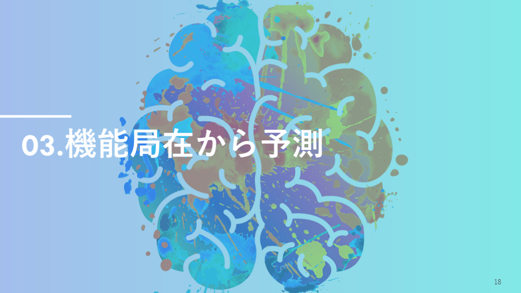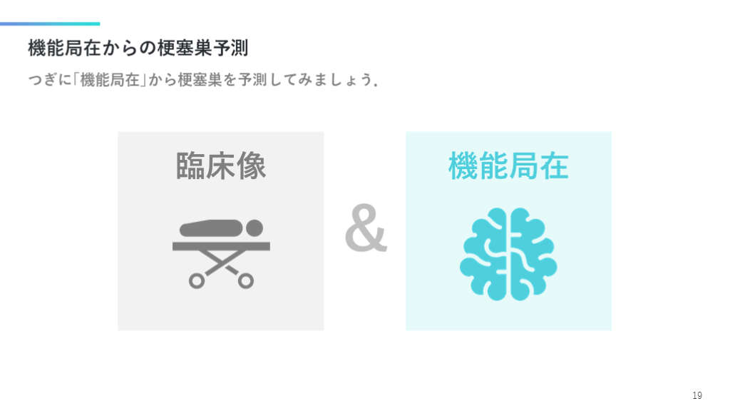 #20. 機能局在からの梗塞巣予測 つぎに「機能局在」から梗塞巣を予測してみましょう. 19 臨床像