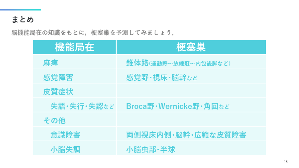 #27. 脳機能局在の知識をもとに,梗塞巣を予測してみましょう. 26 まとめ