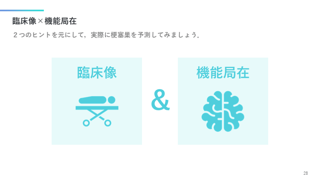 #29. 臨床像×機能局在 2つのヒントを元にして,実際に梗塞巣を予測してみましょう. 28 臨床像