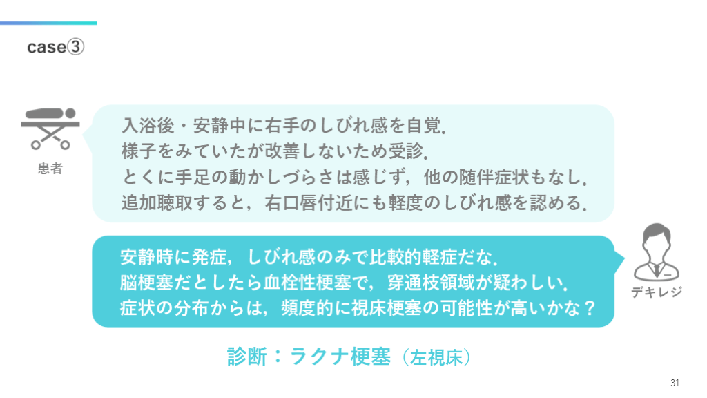 #32. case③ 31 入浴後・安静中に右手のしびれ感を自覚.