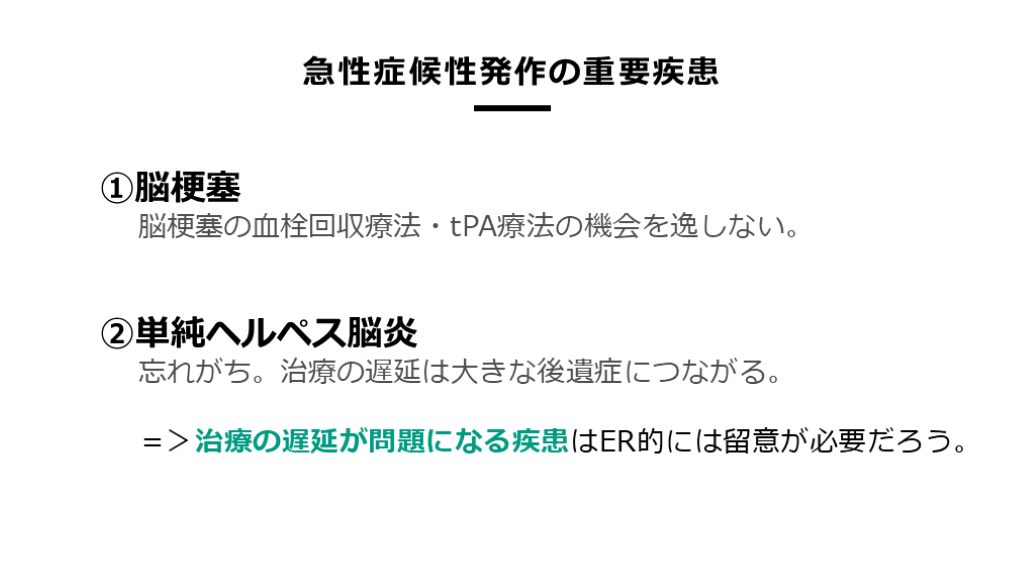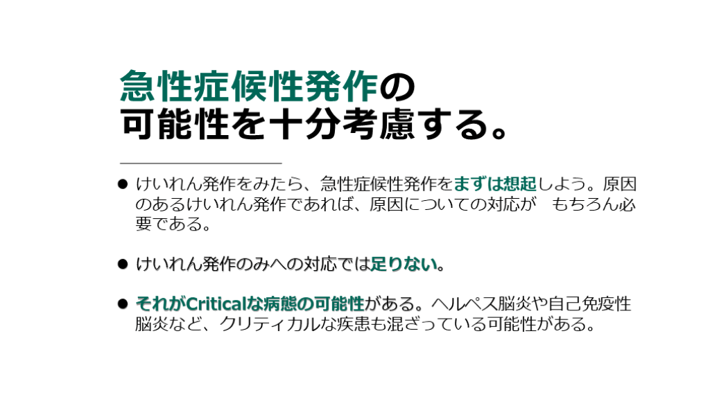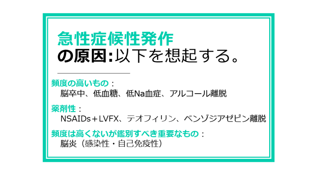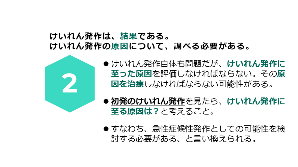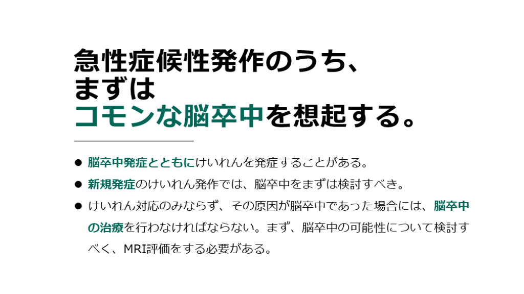 すなわち、急性症候性発作としての可能性を検討する必要がある、と言い換えられる。