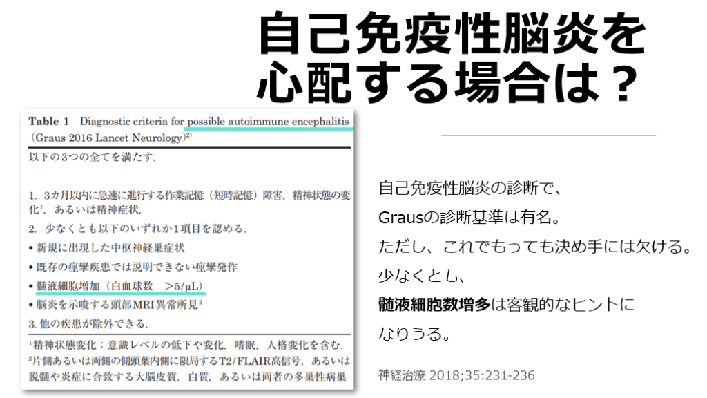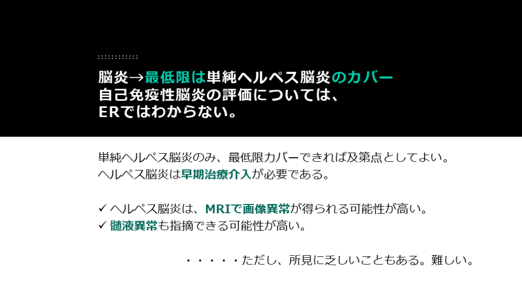 それがCriticalな病態の可能性がある。ヘルペス脳炎や自己免疫性脳炎など、クリティカルな疾患も混ざっている可能性がある。