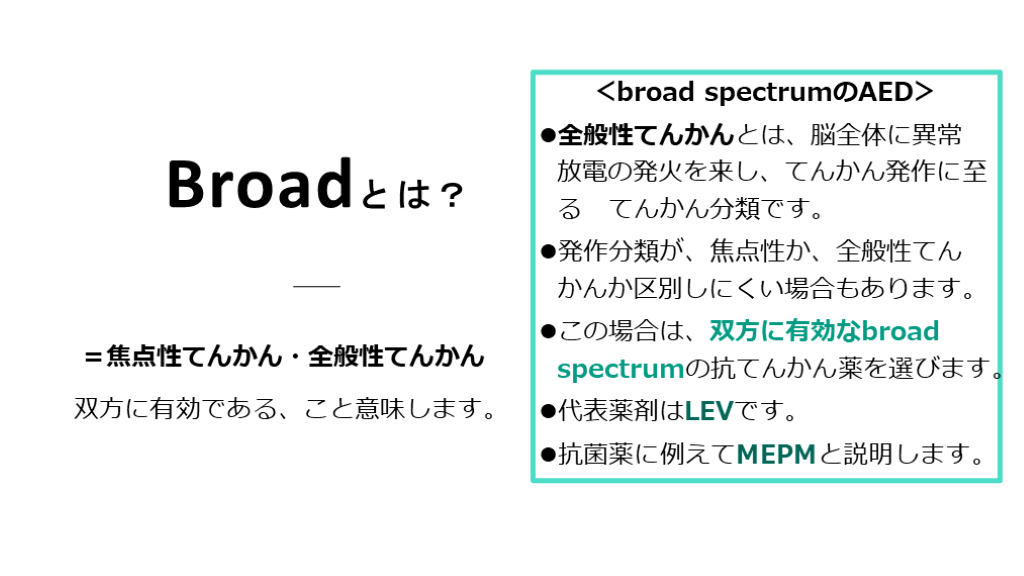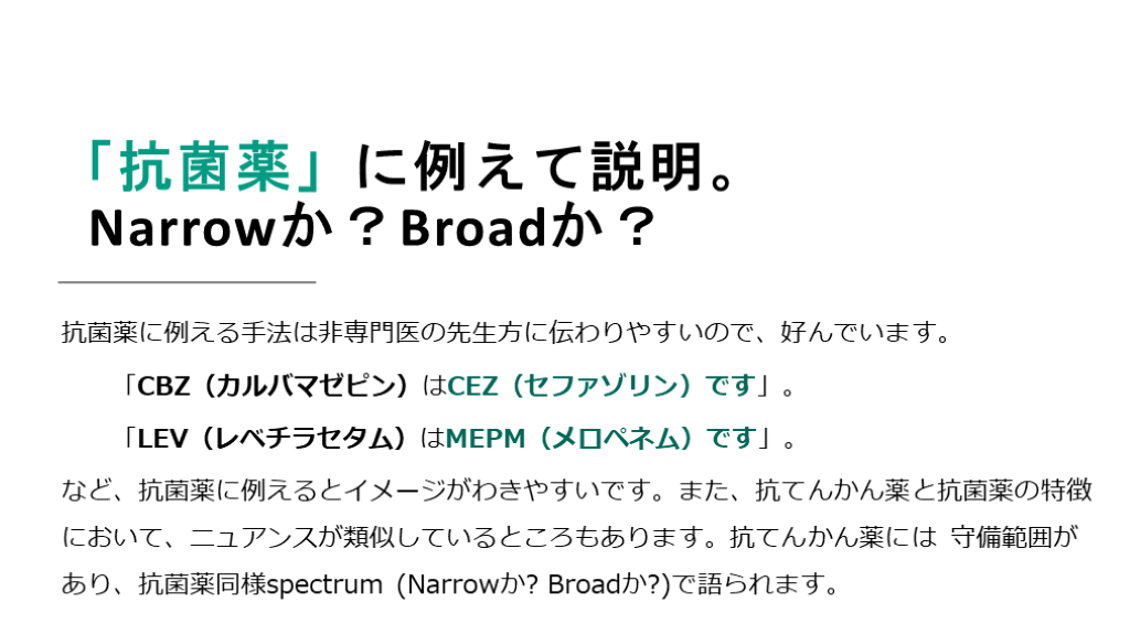 オールマイティな特性。 レベチラセタムの強み:てんかん発作が焦点性てんかん であっても、全般てんかんであっても有効である。