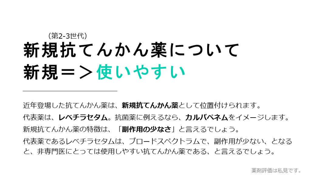 新規抗てんかん薬で、使用しやすい抗てんかん薬の1つ。非専門医が習熟すべき、薬剤の1つ。