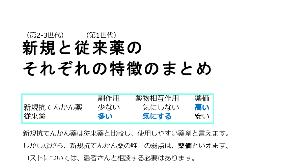頻出薬なので、それぞれの比較についてまとめてみます。