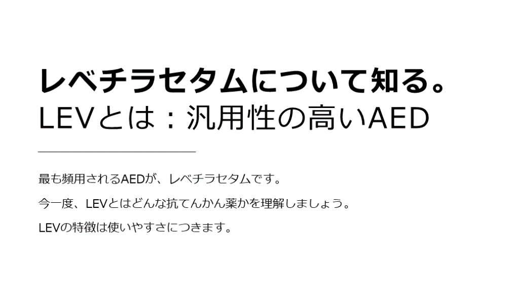 LEVとは:汎用性の高いAED 最も頻用されるAEDが、レベチラセタムです。