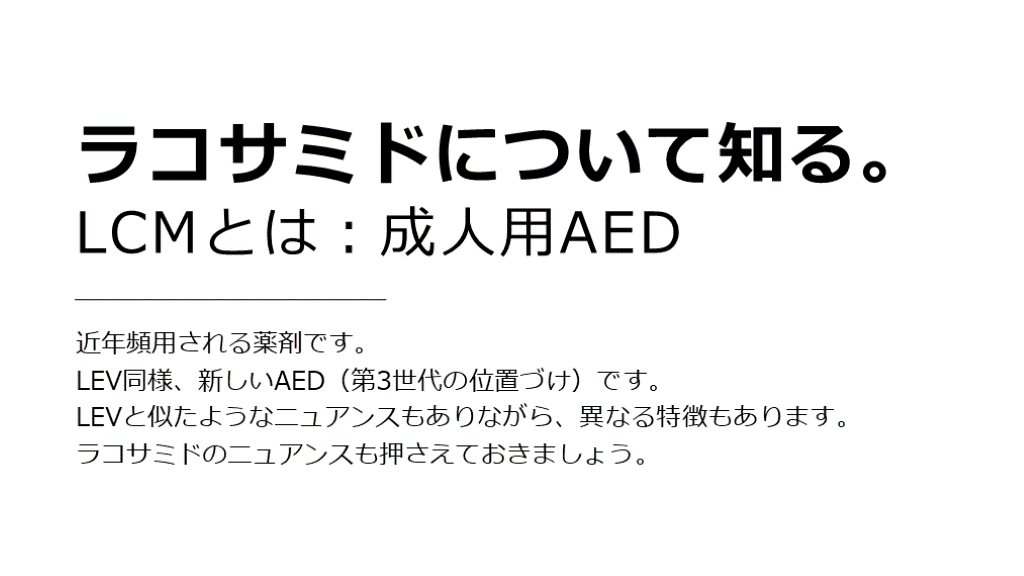 LCMとは:成人用AED 近年頻用される薬剤です。
