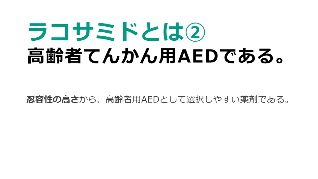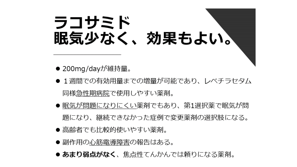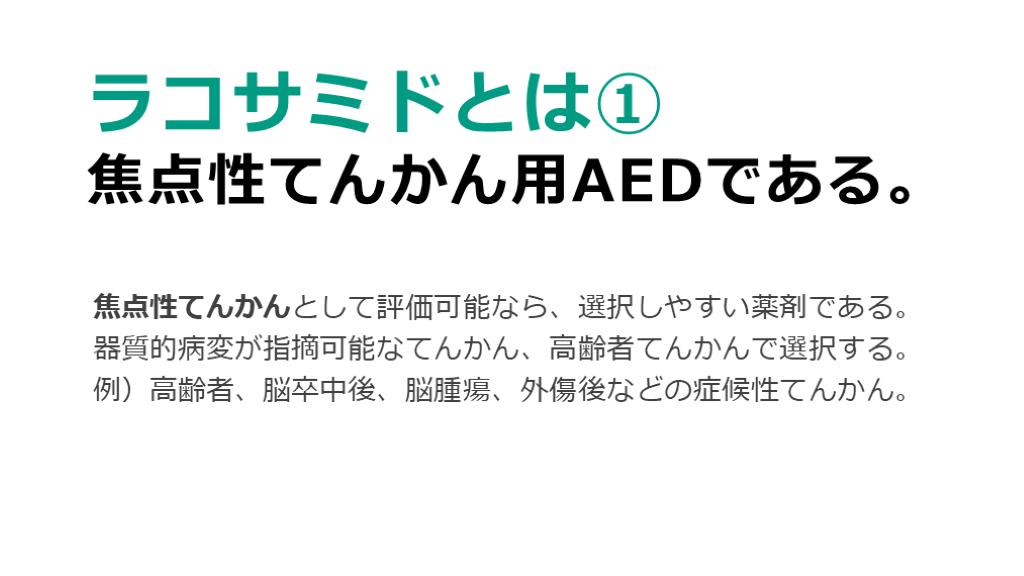 脳卒中を発症しうる高齢者である、という背景も考慮。 ラコサミドとは③