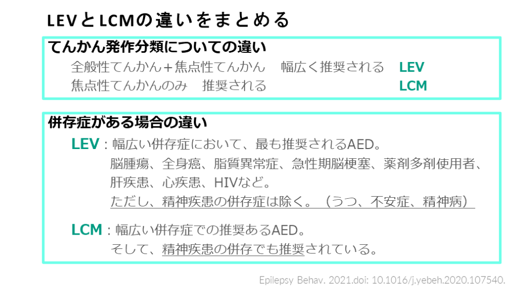 そして、精神疾患の併存でも推奨されている。 Epilepsy Behav. 2021.doi: 10.1016/j.yebeh.2020.107540.