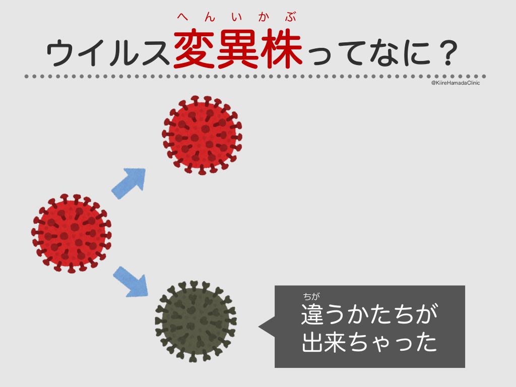 #14. へ ん い か ぶ ウイルス変異株ってなに? @KiireHamadaClinic ちが 違うかたちが 出来ちゃった