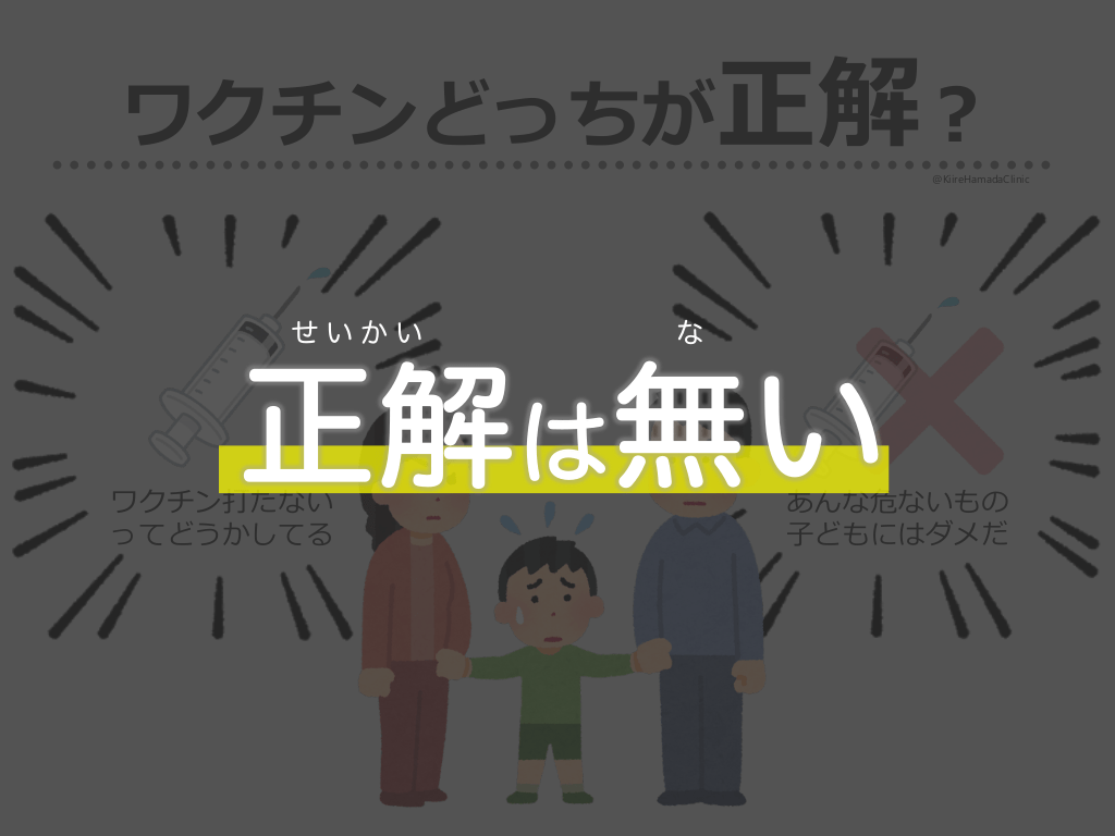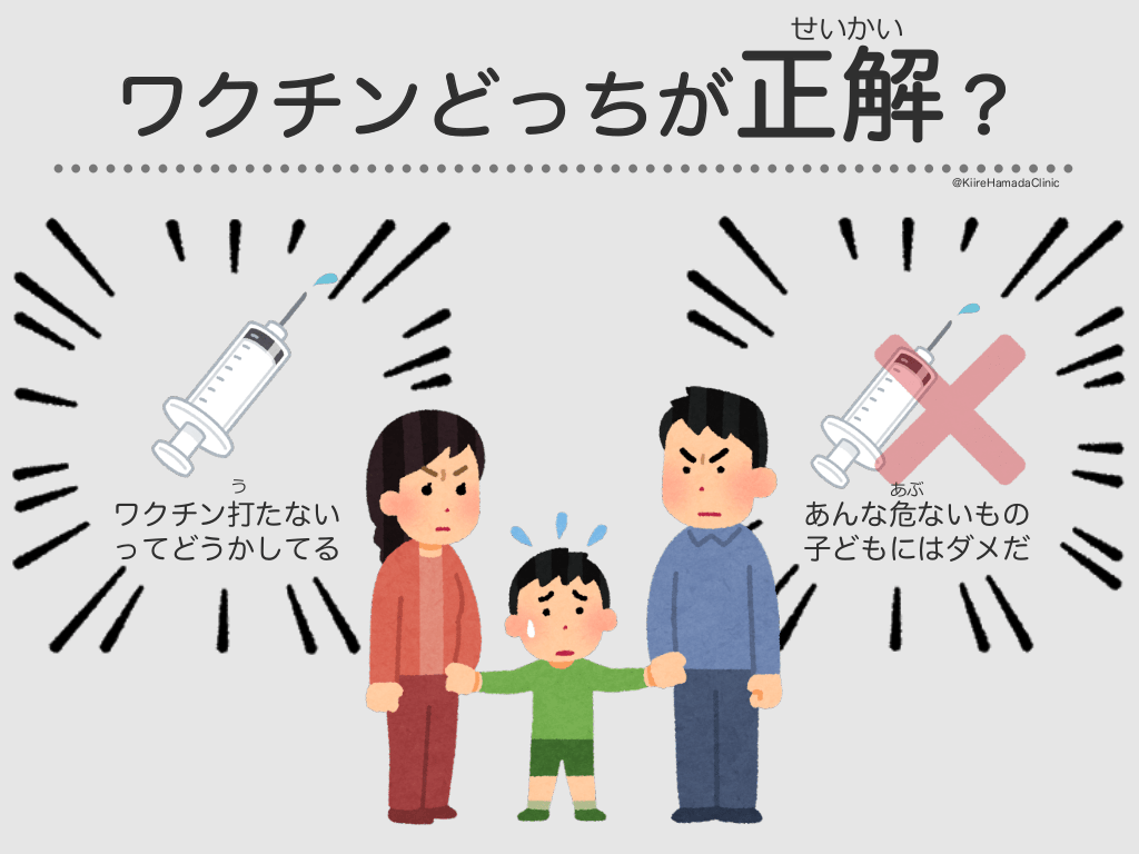 #3. ワクチンどっちが正解︖ @KiireHamadaClinic せいかい な 正解は無い ワクチン打たない ってどうかしてる あんな危ないもの ⼦どもにはダメだ