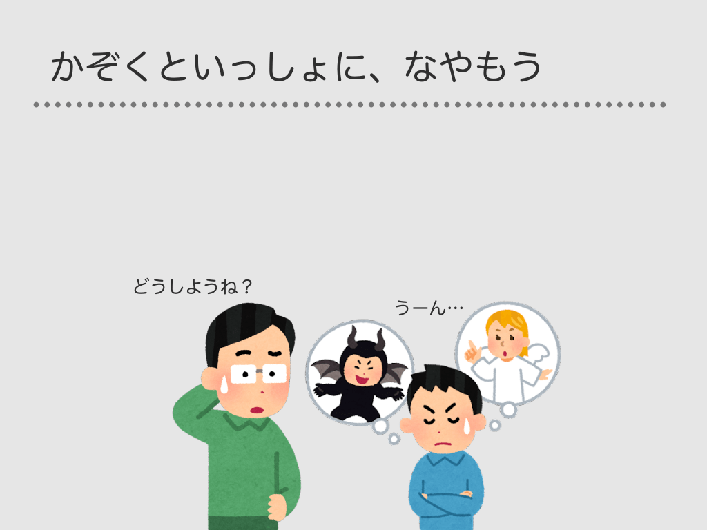 #55. かぞくといっしょに、なやもう どうしようね? うーん…