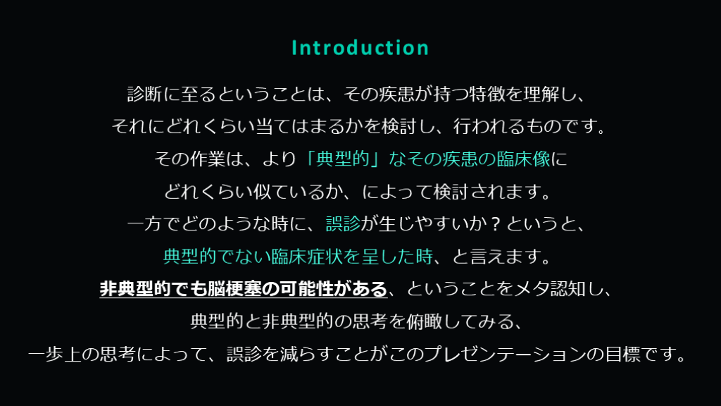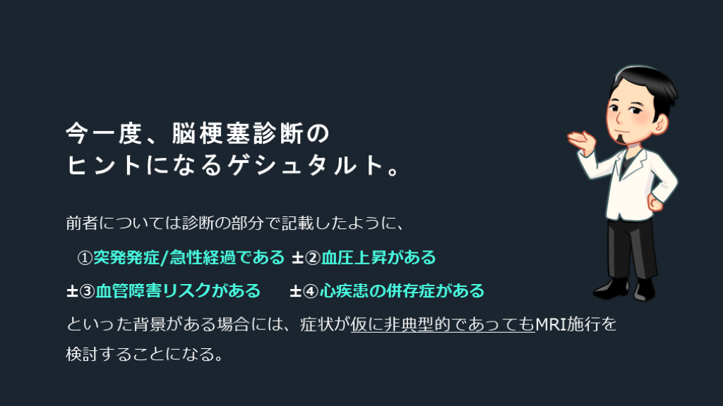 非典型的でも脳梗塞の可能性がある、ということをメタ認知し、