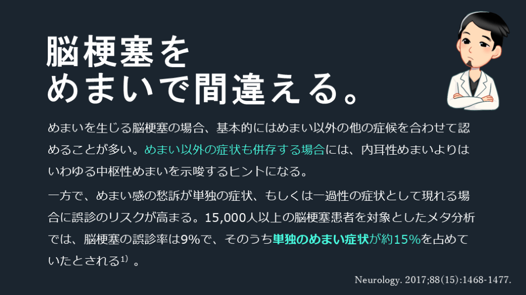 めまいで間違える。 Neurology. 2017;88(15):1468-1477.