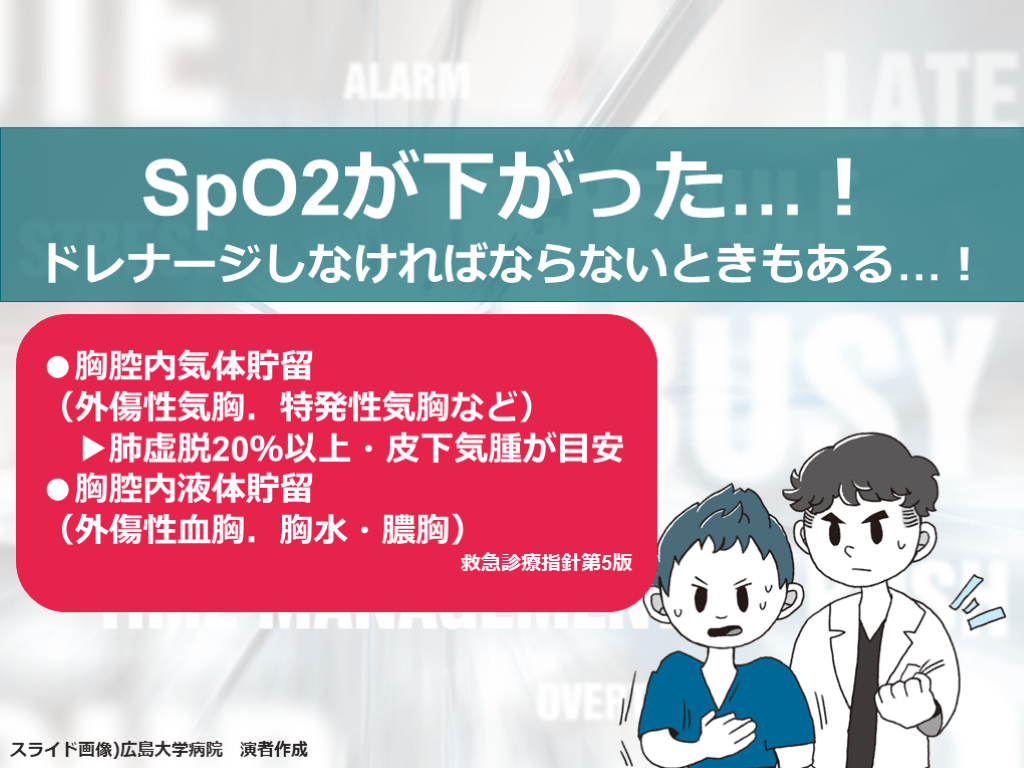 ドレナージしなければならないときもある…! スライド画像)広島大学病院 演者作成 ●胸腔内気体貯留