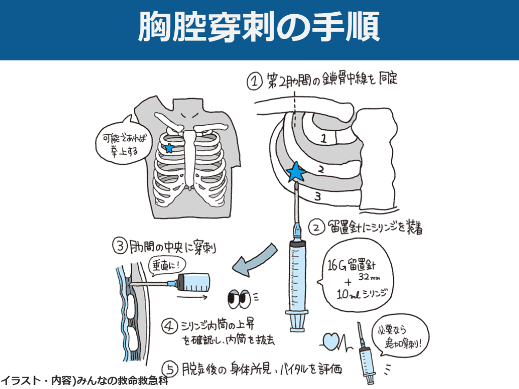 #9. 胸腔穿刺の手順 イラスト・内容)みんなの救命救急科